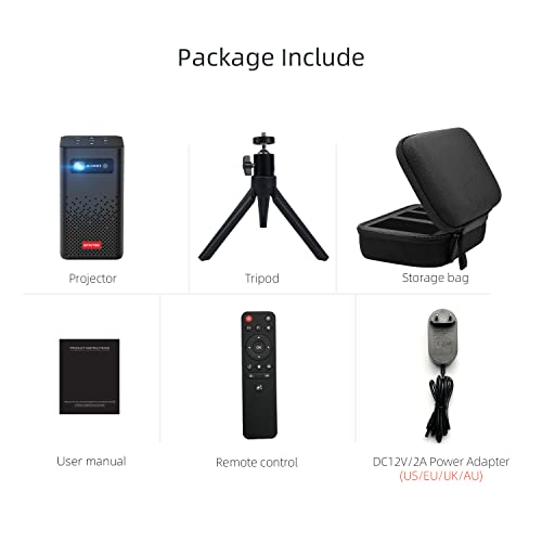 Specification: BYINTEK P20 verbeterde Mini DLP 3D-beamer, draagbare HD-led-wifi-projector, ondersteunt 1080P 4K, Android 9.0 OS, draadloos display voor smartphones, met draagtas en statief