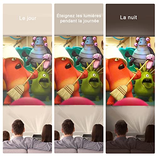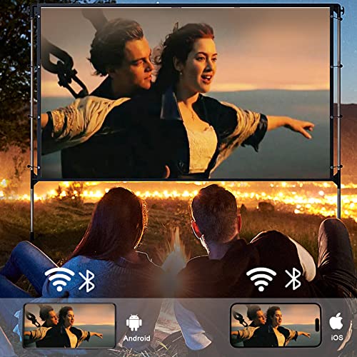 Draagbare binnen- en buitenprojector: 1080p native, tot 170 inch schermgrootte smelten, adviseert de start vanaf een afstand van 3 m (140 inch hoge beeldkwaliteit en videoprestatie). Betere ervaring wanneer het op een donkere plaats of ‘s nachts is.