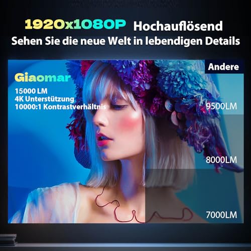Specification: Giaomar Mini-beamer, 5G wifi, bluetooth-beamer, 14000 lumen, Native 1080p, Full HD beamer, 4K ondersteund, Giaomar mini-beamer, thuisbioscoopprojector met tas, compatibel met