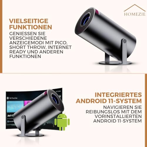Homezie Beamer | WiFi, HDMI, Bluetooth | 4K support | Android 11 | Projector