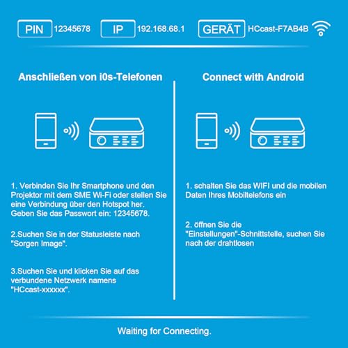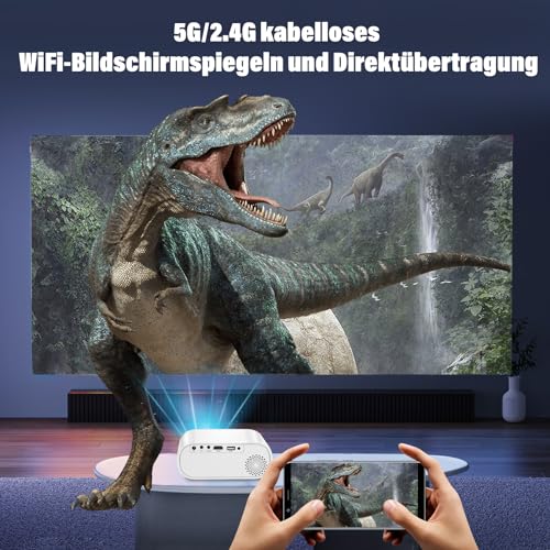 5G/2.4G schermsynchronisatie: dankzij de innovatieve 5G/2.4G WiFi directe verbindingstechnologie kun je naadloze streaming ervaren. Geïntegreerde dual-band wifi-chips 2,4 G + 5 G maken vertragingsvrije verbindingen mogelijk. Onze projector is compatibel met iOS, Android en Windows en maakt een draadloze verbinding met je apparaten mogelijk.