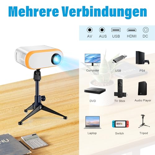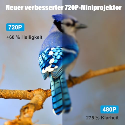 Hoge resolutie beeldkwaliteit: met een oorspronkelijke resolutie van 1280 x 720p en ondersteuning voor 1080P-resolutie zet onze mini-projector nieuwe normen. Dankzij de nieuwste focustechnologie en een zeer brekende lens bereikt hij een indrukwekkende helderheid van 8000 lumen. Verschillende helderheidsinstellingen bieden een optimale visuele ervaring.