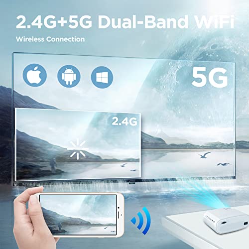 Mini Projector 1080P Full HD, UMOVIEE 5G Wi-Fi Projector Bluetooth 340 ANSI helderheid [meer dan 9500 lumen] LED draagbare projector compatibel met Android/iOS/HDMI/TV Stick/Laptop/DVD/USB/PS3/PS4
